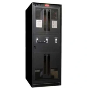 A TAA-compliant power array cabinet supporting scalable and organized UPS battery configurations.