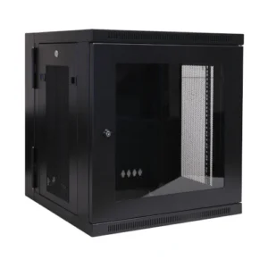 Compact 12U wall-mount rack providing secure mounting and efficient cable management for small IT setups.