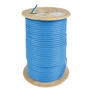 Blue Cat6 Gigabit solid-core plenum-rated bulk cable.
