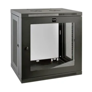 The Eaton SRW12US 12U wall-mount rack provides a low-profile, secure, and space-saving solution for mounting switches and network hardware.