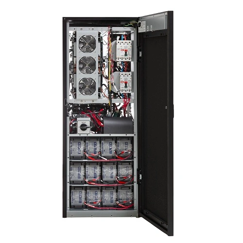 This 60 kVA tower UPS provides high-capacity, double-conversion power protection with a 230 V AC input and 208 V AC output. Designed for mission-critical facilities, it supports large loads with robust efficiency. Its internal battery system ensures long runtime, and built-in diagnostics allow for easy maintenance. Ideal for enterprise data centers, telecom, and industrial environments requiring continuous, clean power.