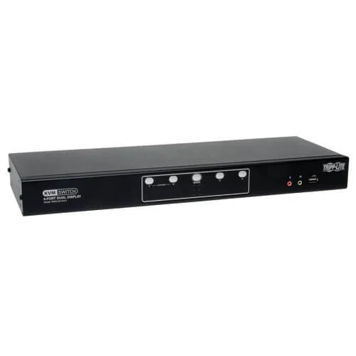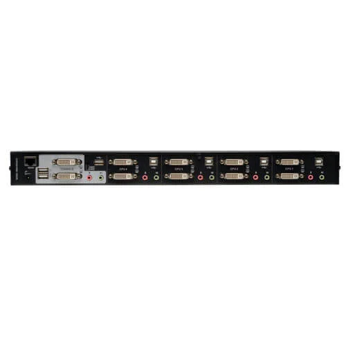 4-port dual-monitor DVI KVM switch with USB 2.0 and audio support for efficient server management.