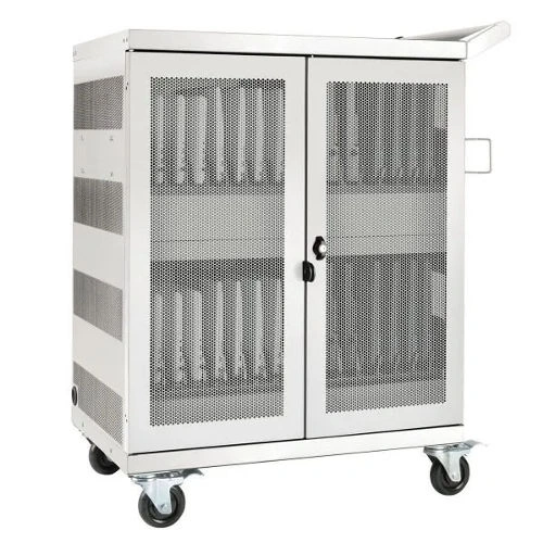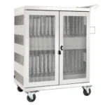 This 32-device AC charging cart stores and charges Chromebooks, laptops, and tablets in a secure, ventilated enclosure. Its steel body and internal airflow ensure safe all-day charging. Locking doors and organized AC outlets make it suitable for schools, labs, and training centers requiring device security and bulk charging.