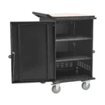 This locking storage cart is designed to safely store and transport mobile devices and AV equipment. Its durable construction and secure locks prevent unauthorized access while protecting valuable equipment. Ideal for classrooms, offices, or healthcare facilities, it includes adjustable shelves, cable management, and mobility features for convenient, organized storage.