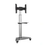 This rolling TV cart supports 37″ to 70″ displays and is designed for mobile presentations, signage, and collaborative environments. Its sturdy build ensures smooth movement and safe mounting. Featuring adjustable height, integrated shelving, and cable management, it delivers flexibility and professional display mobility for offices, classrooms, and events.
