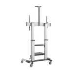 This heavy-duty rolling TV cart supports large displays and features height adjustment for ergonomic viewing. Its durable construction ensures safe mobility and stability during transport. Ideal for classrooms, offices, and conference rooms, it includes locking casters and cable management to maintain organized, professional setups.