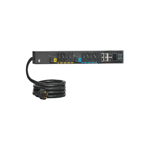 This single‑phase managed rack PDU offers comprehensive intelligence for enterprise racks, with 20 outlets, 24A load, and 5.8 kW capacity at 208 V. Its management features include remote monitoring and outlet‑level control, enhancing operational visibility.Built for modern IT infrastructure, it includes advanced cybersecurity features, flexible mounting options, and support for load balancing across outlets—ideal for data‑centers and mission‑critical racks. (Eaton)