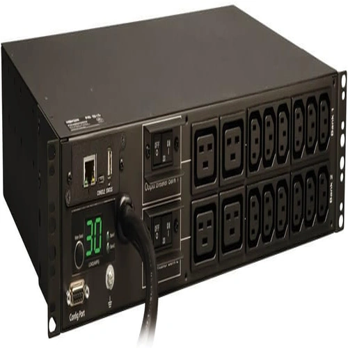 This 52U heavy-duty 4-post Smartrack open-frame rack is designed for large-scale IT deployments, providing sturdy support for servers, switches, and other equipment. Its modular design allows cable management, ventilation, and easy equipment access.